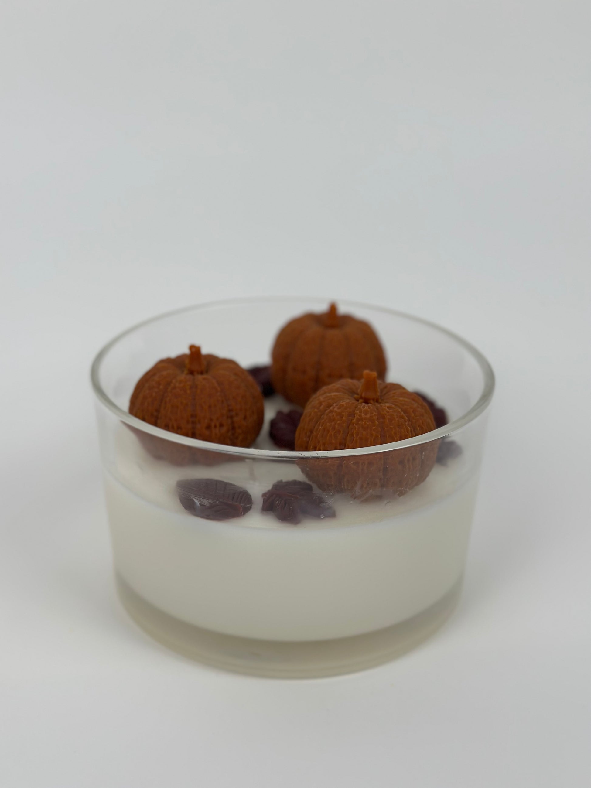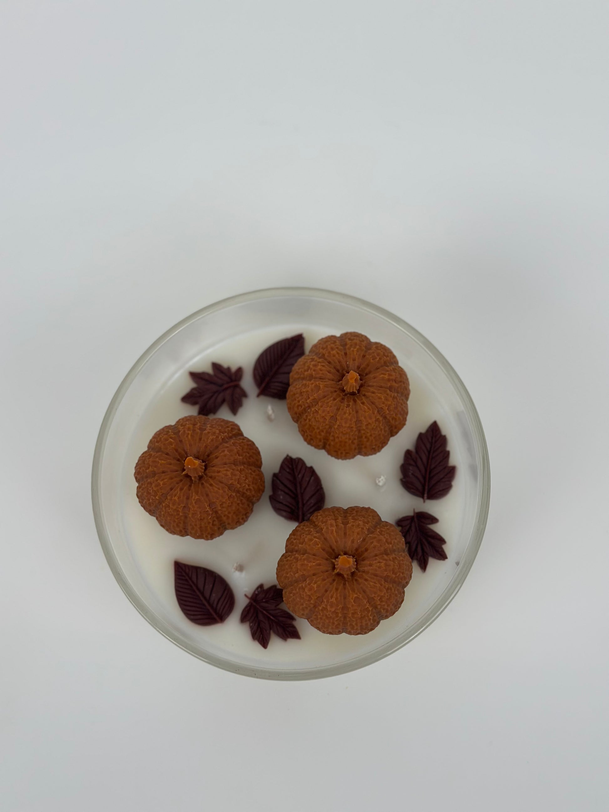 Celebrate the magic of fall with our pumpkin-decorated scented candle, a cozy seasonal piece that combines style and fragrance. Designed with charming pumpkin details, this candle instantly adds warmth and festive autumn vibes to your home.