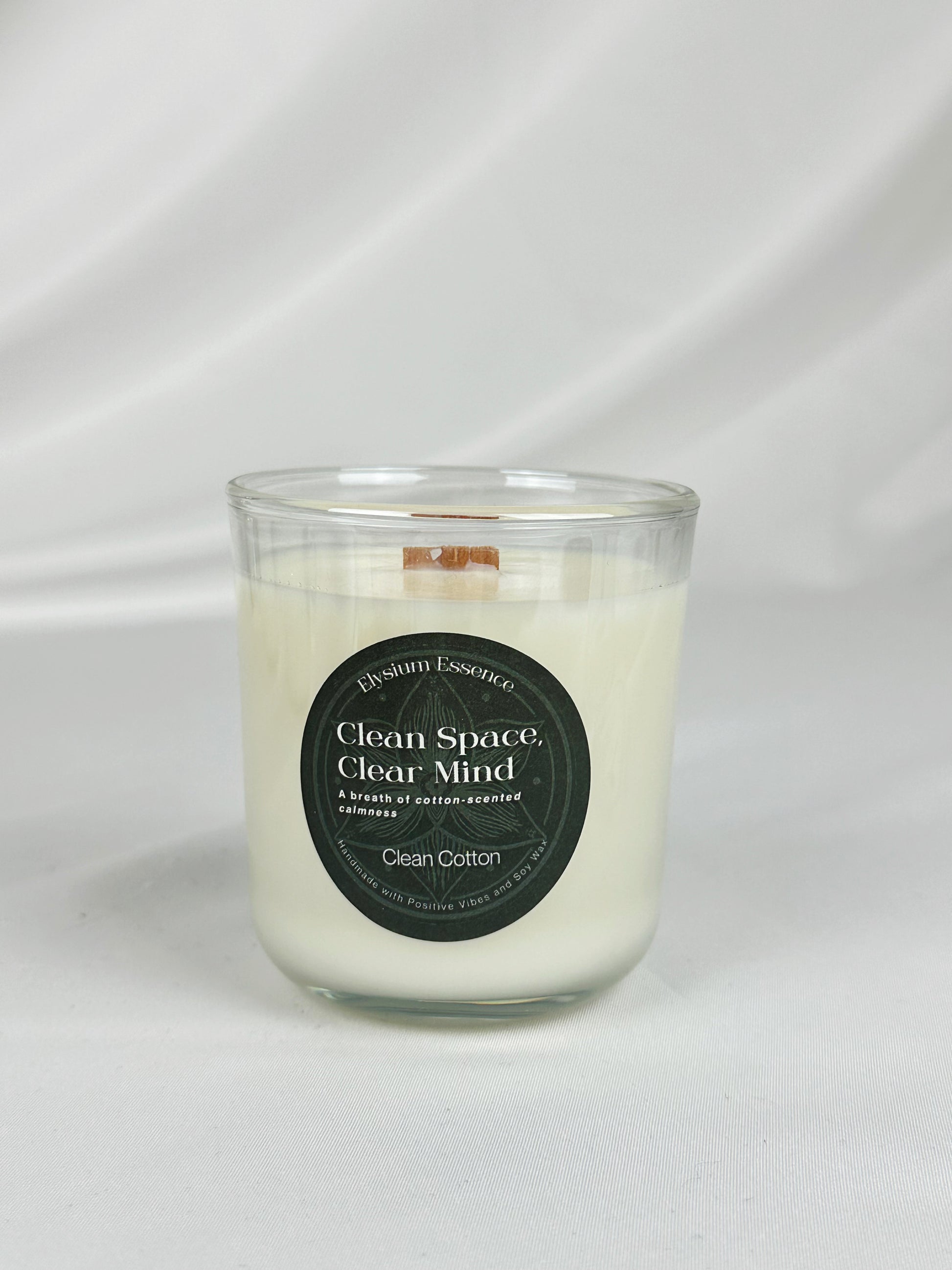 'Clean Space, Clear Mind' Soy Candle - Clean Cotton Scent 200g Container Candle