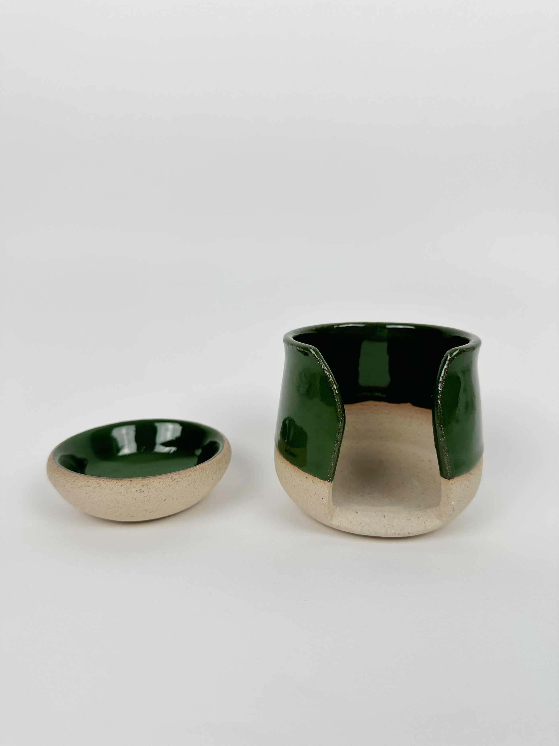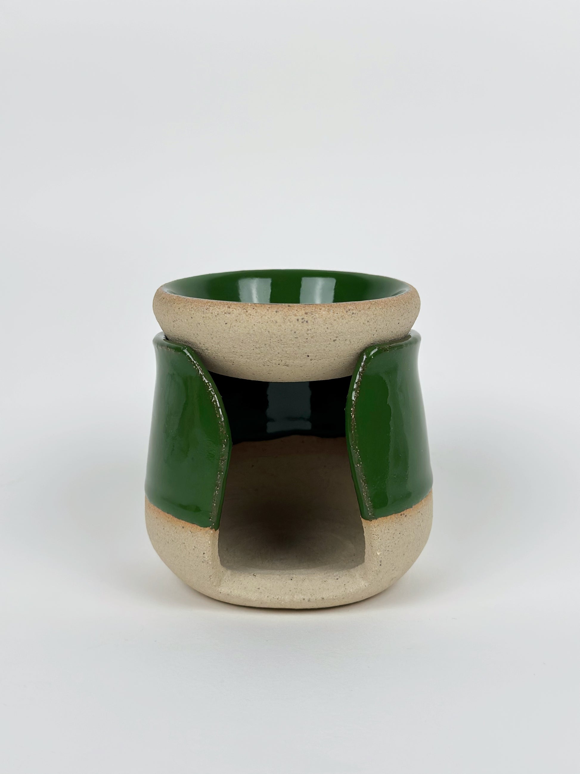 Handmade Ceramic Half Green Half Beige Wax Burner
